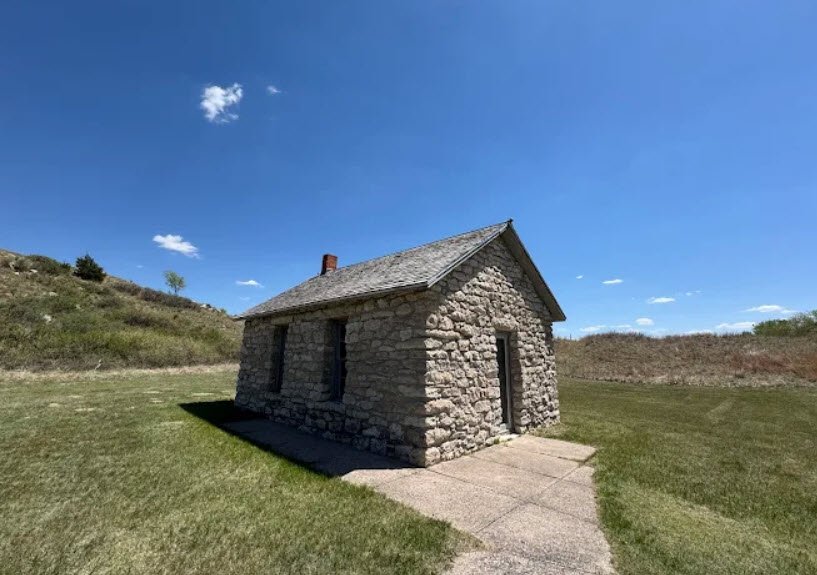 Key features include Ash Hollow Cave, an important archeological rockshelter showing thousands of years of human use, visible wagon‑trail ruts at Windlass Hill, a historic one‑room schoolhouse, and the Ash Hollow cemetery, all linked by several miles of hiking trails and picnic areas along the North Platte River bluffs.