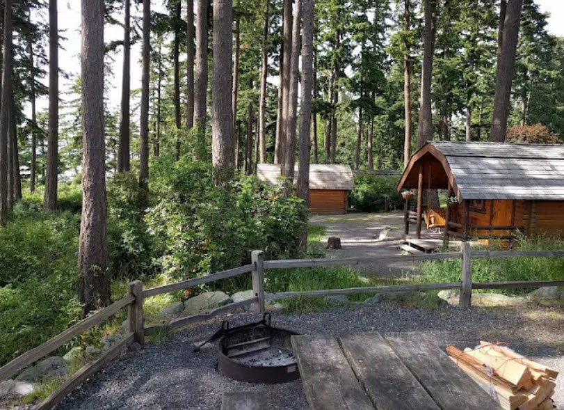 Once a dairy farm established in 1933, it now provides 76 campsites including partial hookups for RVs up to 50 feet, six cabins with San Juan Islands views, and facilities like restrooms, showers, picnic areas, and a group camp. Visitors enjoy kite flying in windy conditions, beachcombing, swimming, birdwatching for eagles and herons, and proximity to the 11,000-acre Padilla Bay National Estuarine Research Reserve for educational tidal exploration.