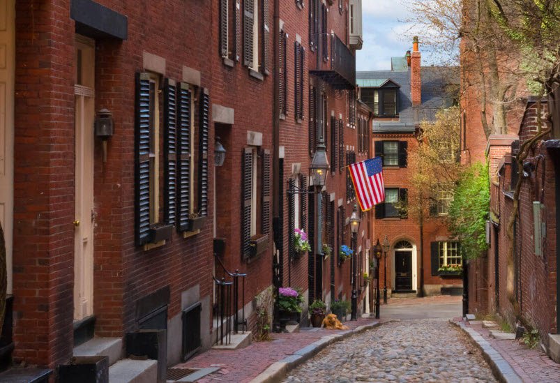 Beacon Hill is a historic and picturesque neighborhood in Boston, Massachusetts, known for its charming cobblestone streets, Federal-style brick rowhouses, and antique gas lamps that create a timeless atmosphere.