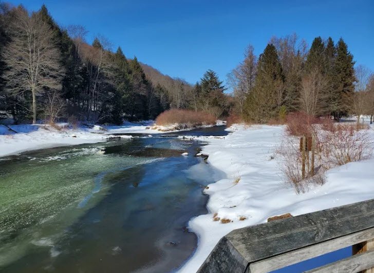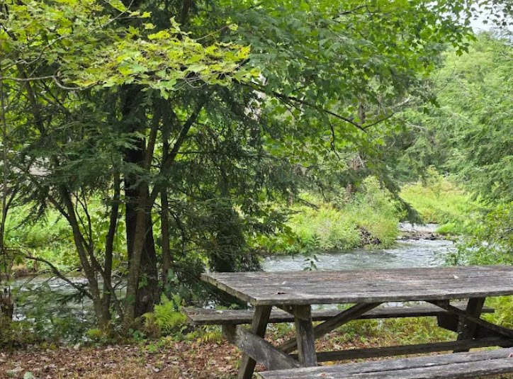 About 20 acres are developed with a large shaded picnic area, swimming pool open seasonally, playground, basketball and volleyball courts, and three reservable pavilions. The surrounding northern hardwood forest of beech, birch, cherry, and maple supports hiking trails, excellent trout fishing in the restored river once polluted by mine drainage, kayaking, canoeing, and wildlife observation in a serene, family-friendly setting.