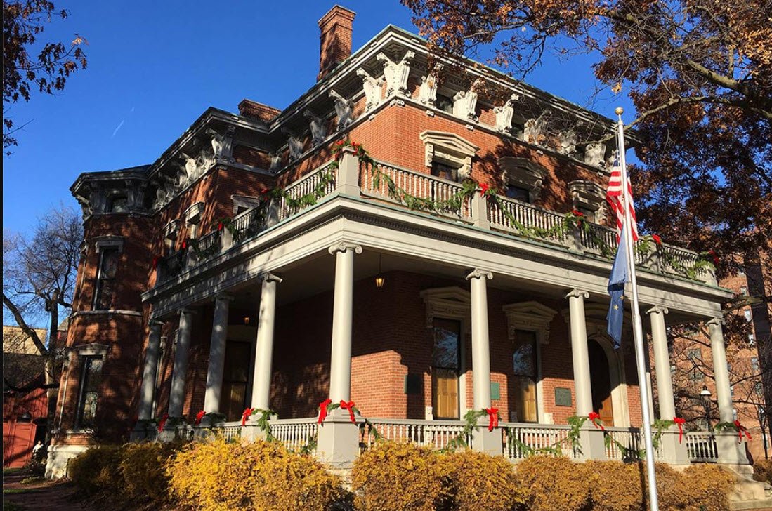The Italianate-style red brick house with sixteen rooms was built between 1874 and 1875 and features architectural details like a three-story bay window, parquet floors, and walnut and butternut woodwork. Harrison lived there before, during, and after his presidency, and it was from the front porch of this house that he conducted his famous 1888 "Front Porch Campaign." The home was modernized in 1896 with electricity and a front porch addition.