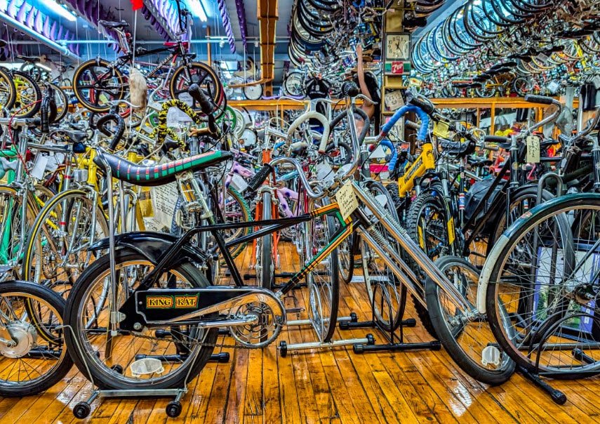What started as one reclaimed bike found in a junkyard evolved into a vast collection with over 6,000 bicycles on display, including rare vintage models, movie prop bikes like Pee-wee Herman's iconic bicycle, unique fiberglass Bowden Spacelanders, and colorful BMX bikes. The museum offers a vibrant, immersive experience with neon-lit rooms, whimsical exhibits, and a working bike shop where visitors can get repairs, tune-ups, or trade bikes.