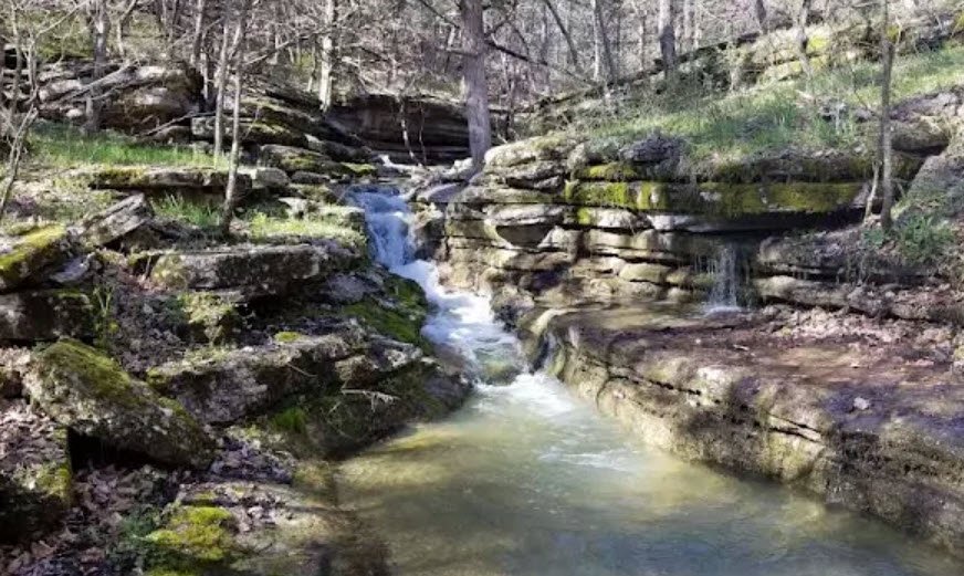 Visitors hike the 3.4-mile Ozark Chinquapin Trail through the Elk River Breaks Natural Area, finding solitude amid diverse forests, intermittent waterfalls, and gravel bars along Big Sugar Creek, with basic facilities like parking and a vault toilet at this lightly developed, unstaffed site.