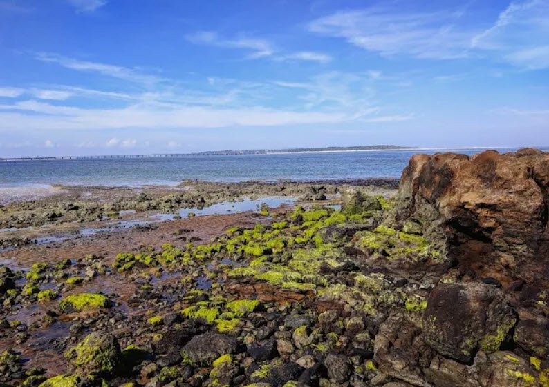 This natural preserve, home to ancient Timucua shell middens, gopher tortoises, songbirds, bald eagles, and salt marsh ecosystems, features unique blackrock sedimentary hardpan formations on Blackrock Beach that shelter tide pool creatures.