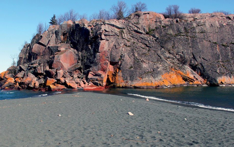 The dark sand results from taconite tailings, a byproduct of iron ore mining discarded into the lake decades ago, which has since been naturally restored but maintained its onyx hue. The beach offers a peaceful atmosphere with soft black sand and clear waters, making it a popular spot for swimming, picnicking, and relaxing while enjoying stunning views of the rugged Lake Superior shoreline.