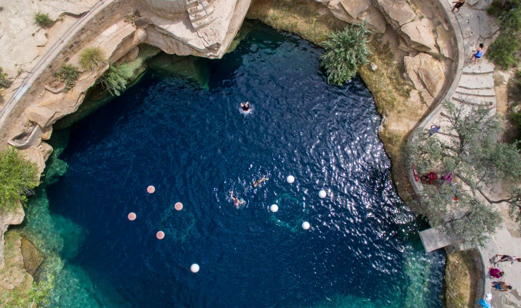 Once a fish hatchery, it draws swimmers, snorkelers, cliff jumpers, and scuba divers worldwide for its exceptional visibility up to 100 feet and hidden underwater caves, though permits are required for diving and some passages remain sealed after past tragedies.
