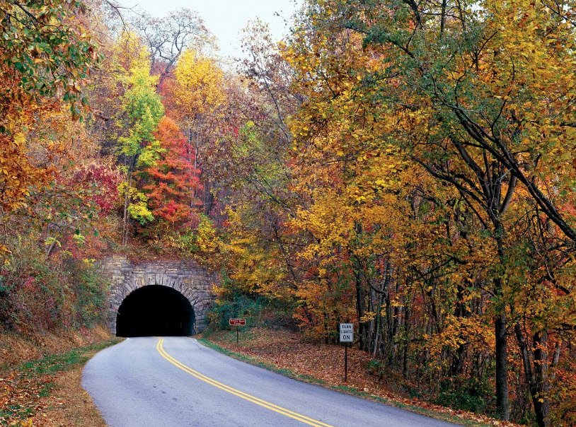 This two-lane road winds along mountain ridges at speeds no higher than 45 mph, featuring 168 bridges, six viaducts, and 26 tunnels mostly in North Carolina, with frequent pull-offs for hiking trails, historic sites like Brinegar Cabin, and spots such as Linn Cove Viaduct and Price Lake. Built starting in 1935 during the Great Depression for jobs and completed in 1987, it remains free to drive but closes in winter due to ice and snow, especially in higher elevations up to 6,047 feet near Mount Pisgah.