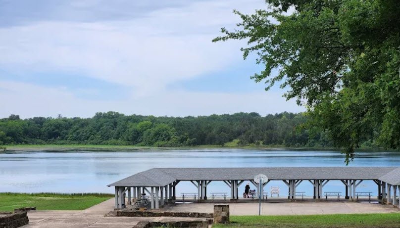 The park sits in the Blackland Prairie region, with rolling grasslands and scattered woodlands that grow thicker along watercourses and the shoreline of a 65‑acre lake impounded by an earthen dam built by the Civilian Conservation Corps in the 1930s.