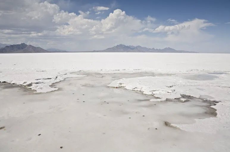 This natural landscape presents a strikingly bright white surface that stretches for miles, creating an otherworldly scene resembling a frozen sea of salt. The salt crust is thickest at the center, reaching up to five feet, and thins toward the edges. The Flats are famous worldwide as a premier location for land speed racing, hosting events where drivers test and break speed records on the perfectly flat terrain.