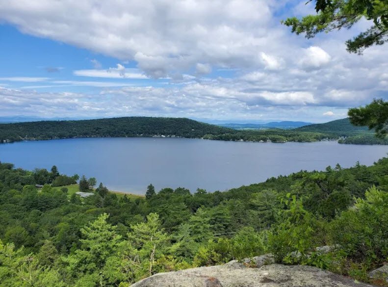 Divided by Vermont Route 53, it features a 1,000-foot sandy beach for swimming, boat rentals including rowboats and kayaks, fishing for bass and perch, hiking trails to waterfalls and scenic vistas, picnicking areas, a nature center with ranger-led programs like night hikes, and camping with 37 tent sites, 7 lean-tos, flush toilets, hot showers, and a dump station.