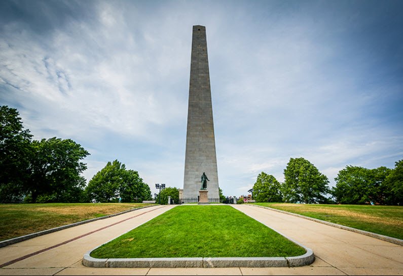 The Bunker Hill Monument in Boston, Massachusetts, is a 221-foot granite obelisk erected to commemorate the Battle of Bunker Hill, one of the first major battles of the American Revolutionary War fought on June 17, 1775.