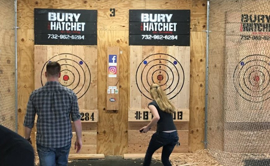 Bury The Hatchet Bucks County in Pennsylvania is an indoor axe throwing recreation center known for offering a fun, safe, and unique experience where participants throw axes at wooden targets.