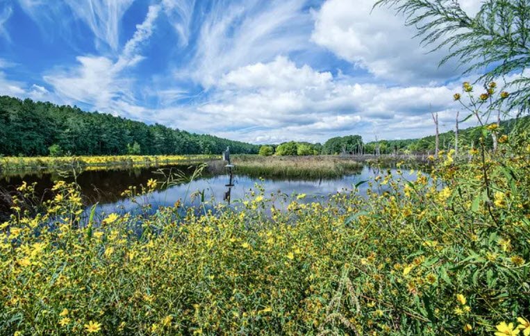 It features over 14 miles of trails open year-round for hiking to river views, marshes, and forests, plus a visitor center with bald eagle exhibits, picnic areas, restrooms, and a paddle-in campground at Jones Pond. The park hosts one of the East Coast's largest bald eagle concentrations alongside over 150 bird species, deer, and diverse wildlife in climax forests, fields, and shoreline habitats.
