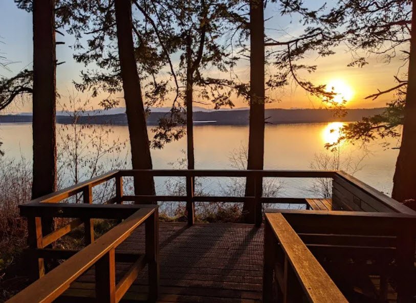 Connected by trails to nearby Camano Island State Park, visitors enjoy a mile of beach for clamming and crabbing, 5.5 miles of forested hiking paths to Cranberry Lake and bluff viewpoints of Whidbey Island, picnicking, birdwatching, and a Discover Pass-required day-use experience year-round.