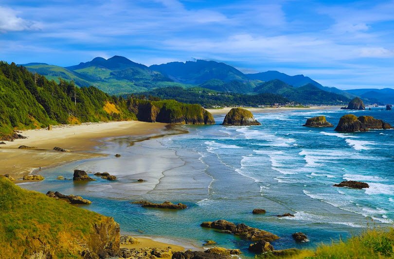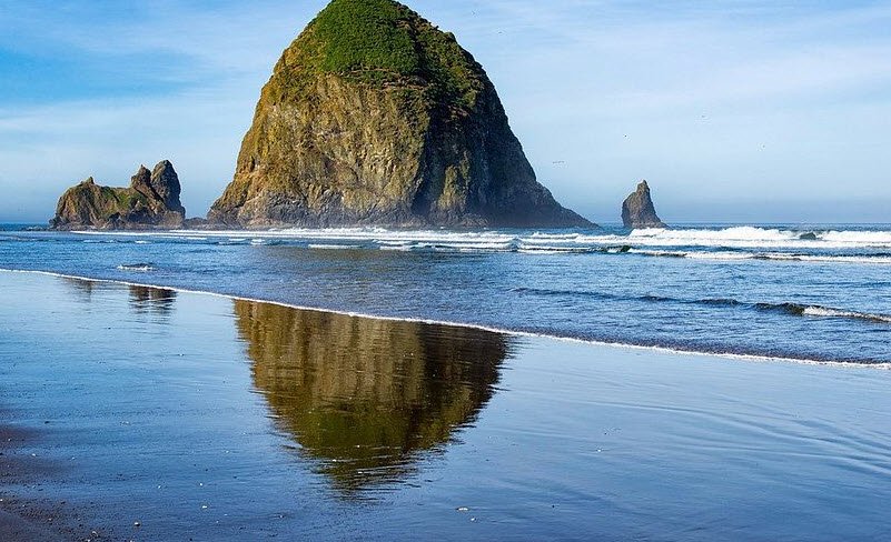 Famous for 235-foot Haystack Rock—a tidepool-rich sea stack and 1990 Marine Garden—plus Ecola State Park trails, galleries, and the Cannon Beach History Center housing Shark artifacts, it blends Native heritage, shipwreck lore, and artsy vibe drawing visitors for walks, whale watching, and sunsets under public beach laws.