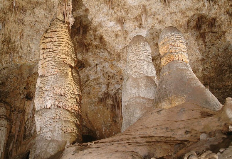 Carlsbad Caverns National Park in southeastern New Mexico is renowned for its vast limestone caves, including the famous Carlsbad Cavern, which features the Big Room—North America's largest cave chamber measuring nearly 4,000 feet long, 625 feet wide, and 255 feet high.
