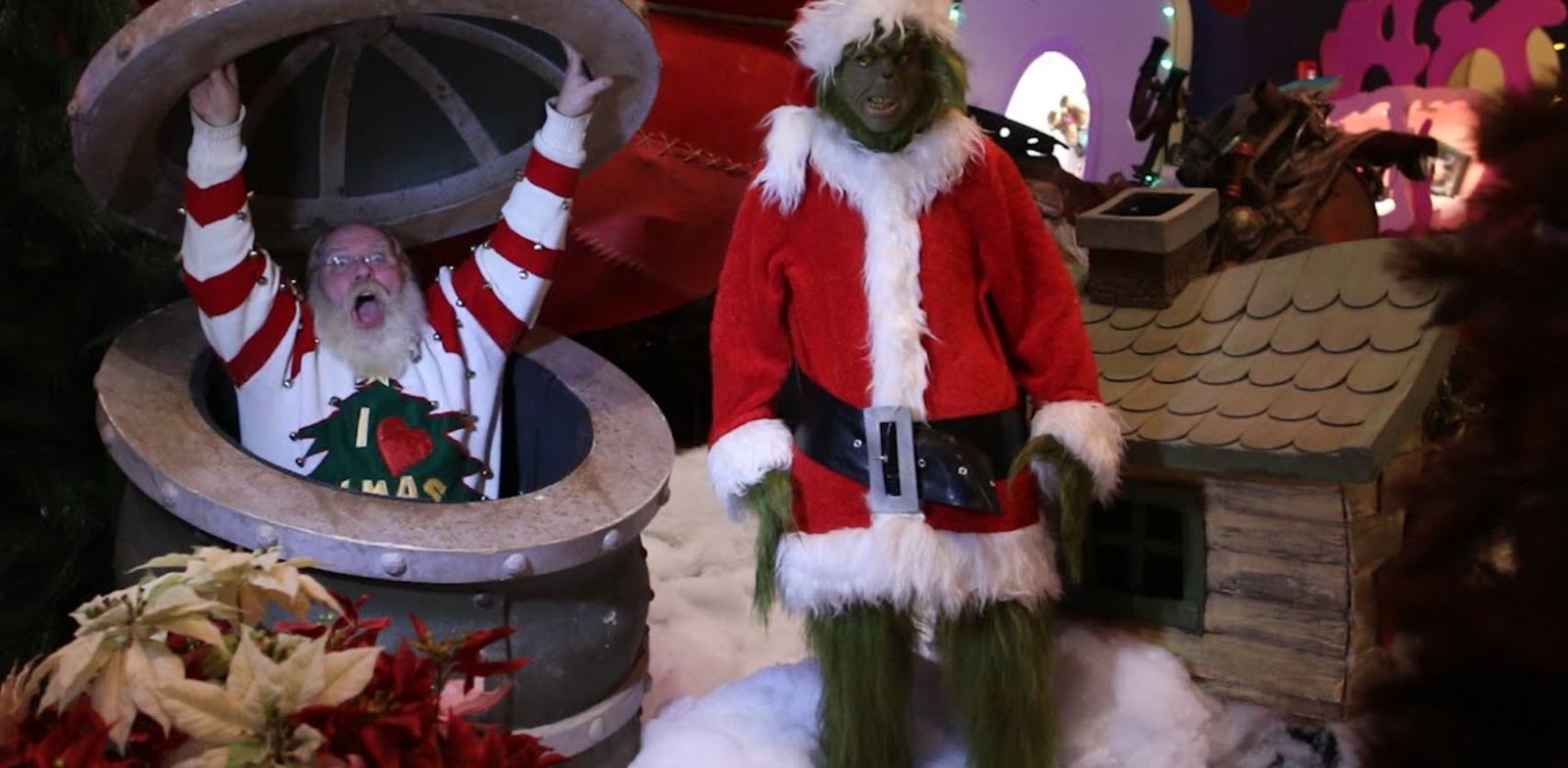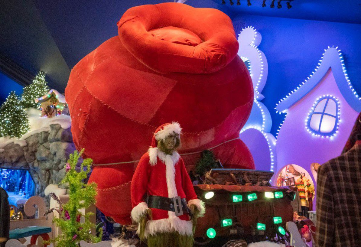 It houses the world's largest privately owned collection of Hollywood Christmas movie props and costumes from films like The Grinch with Jim Carrey's costume, Elf, National Lampoon's Christmas Vacation featuring Cousin Eddie's RV, The Santa Clause series, and A Christmas Story with a replica department store slide.