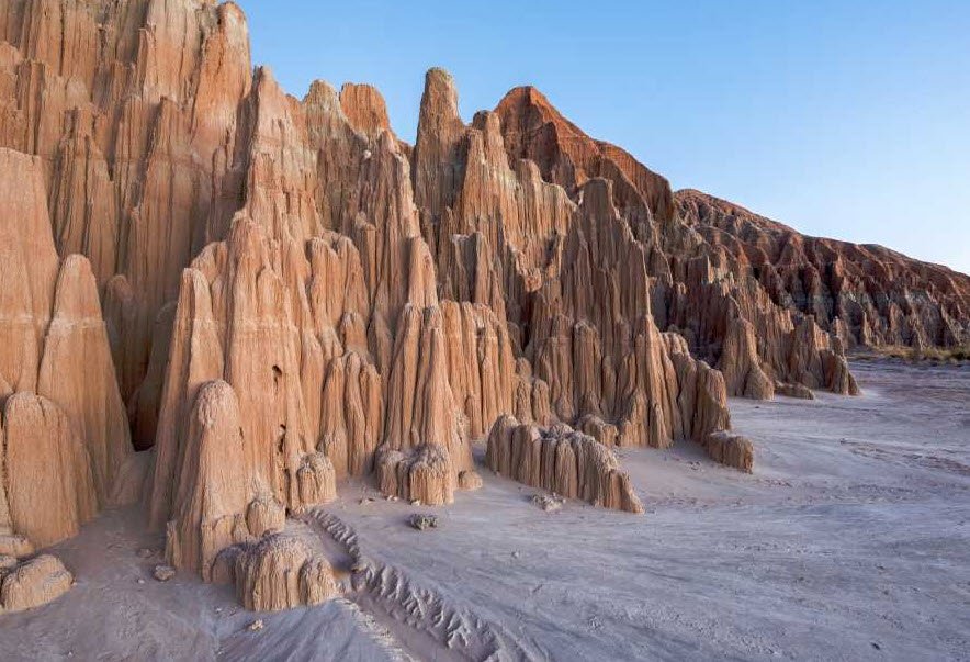 Cathedral Gorge State Park in southeastern Nevada is a unique natural area known for its dramatic and colorful eroded bentonite clay formations, including narrow slot canyons, spires, and hoodoos that resemble cathedral-like shapes.