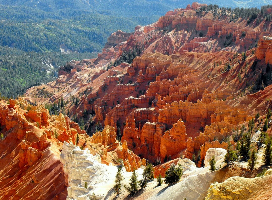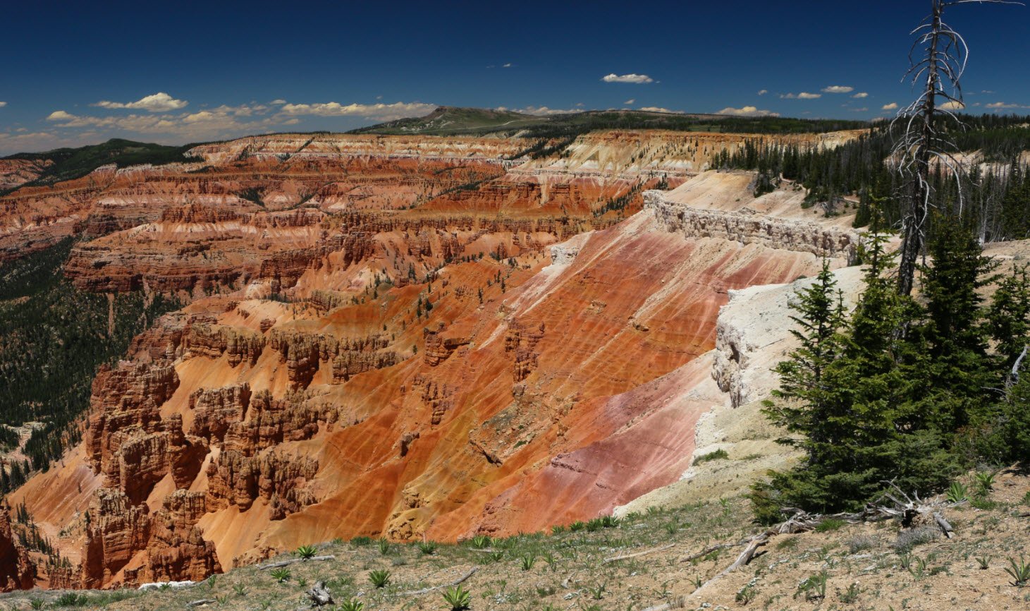 Cedar Breaks National Monument in Utah is a vast natural amphitheater more than three miles wide and over 2,000 feet deep, formed by millions of years of sedimentation, uplift, and erosion.