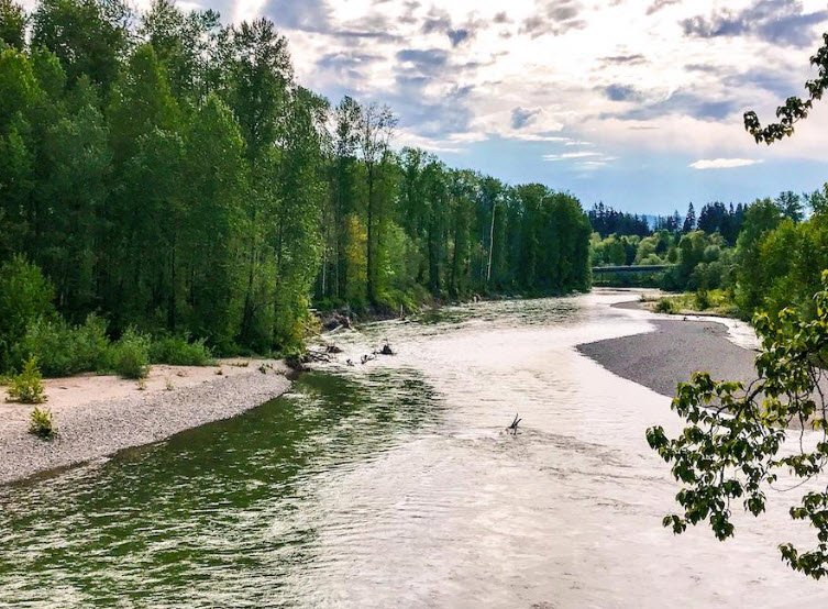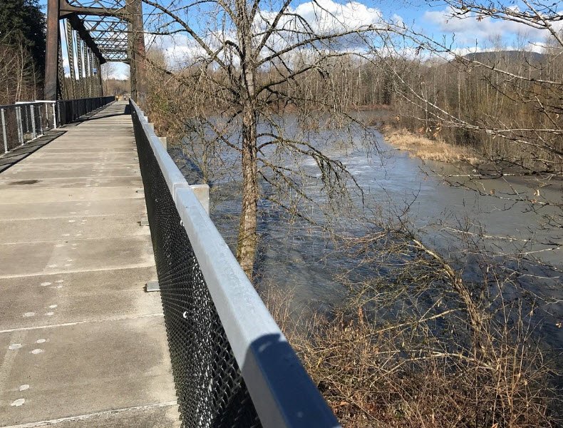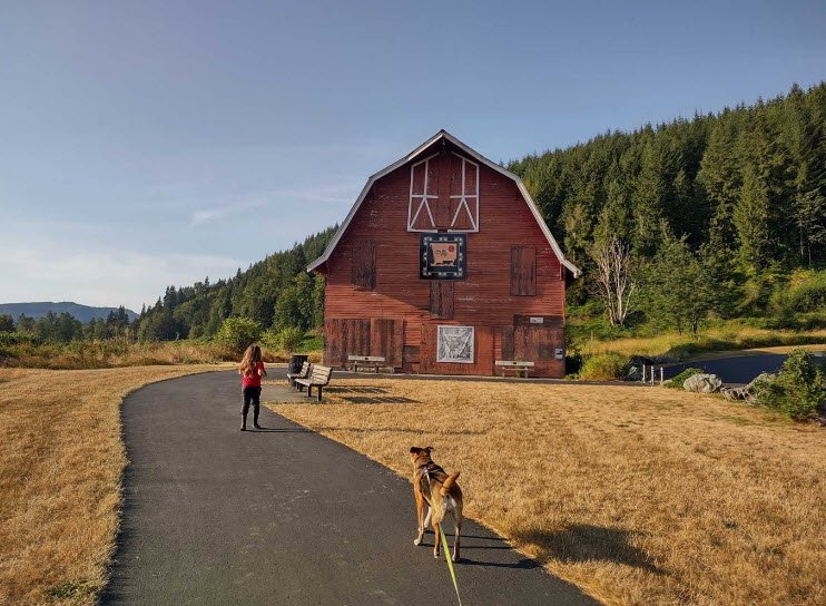 Developed starting in 1989 for Washington state's centennial and completed in 2013, it offers a 10-foot-wide path for hikers, cyclists, and pedestrians plus a parallel equestrian trail, passing farms, forests, creeks, and Cascade Mountain views with trailheads featuring historical displays.