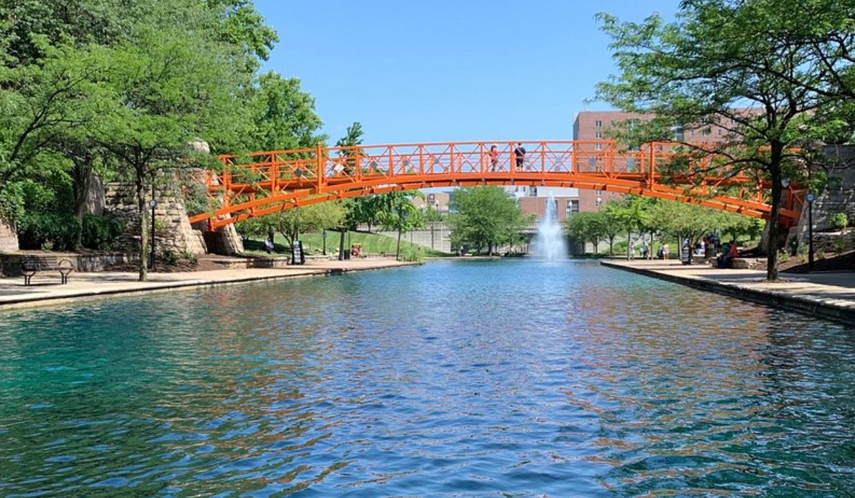 Today, the canal runs through downtown Indianapolis and is a scenic urban park area within White River State Park, featuring walking paths and cultural attractions. It is recognized as an American Water Landmark and serves as a prominent recreational and historic destination that reflects the city's early ambition to become a transportation hub through waterways.