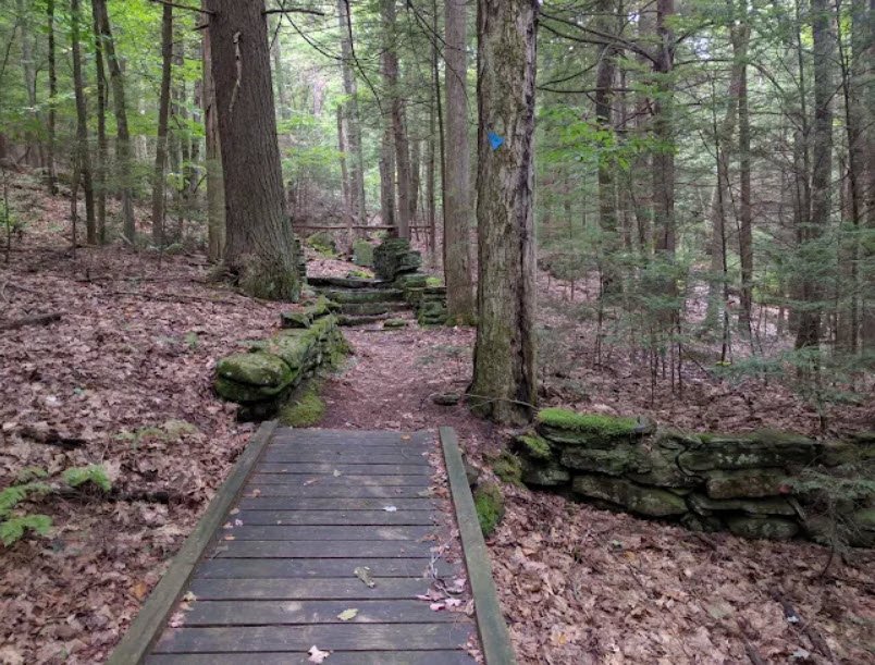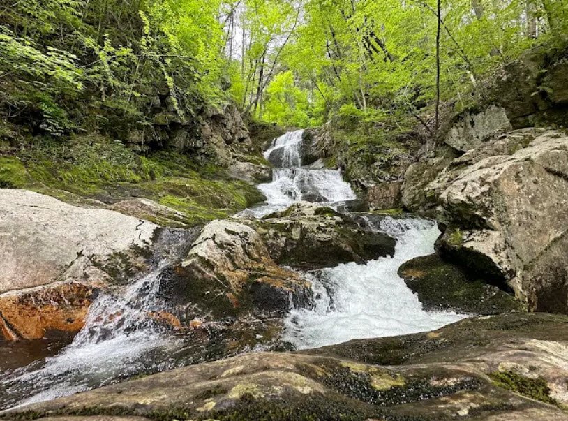 A major highlight is the 60‑foot Sanderson Brook Falls, reached by a short loop trail, as well as a small pond area, remnants of old mining operations, and quiet meadow and marsh overlooks that make it a popular destination for nature walks, picnics, and seasonal outdoor recreation close to the Pioneer Valley.