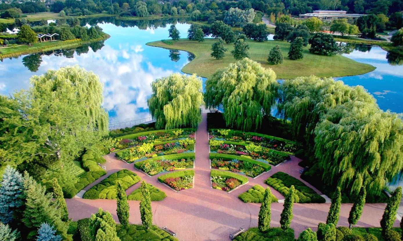 Opened to the public in 1972, it was created as a permanent site for the Chicago Horticultural Society and is managed as a public-private partnership with the Forest Preserve District of Cook County. The garden offers a wide range of experiences, including themed gardens like the Japanese Garden, English Walled Garden, and rose gardens, as well as woodlands, prairies, lakes, and wetlands.