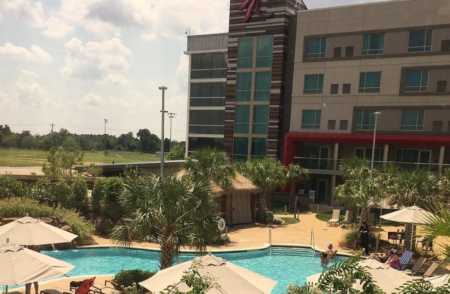 The 24-hour property features a 68,000-square-foot gaming floor with 1,200 electronic gaming machines, 8 table games like blackjack, craps, roulette, and Ultimate Texas Hold'em, plus two restaurants including Firehouse Grill & Buffet and The River Bar & Grill.