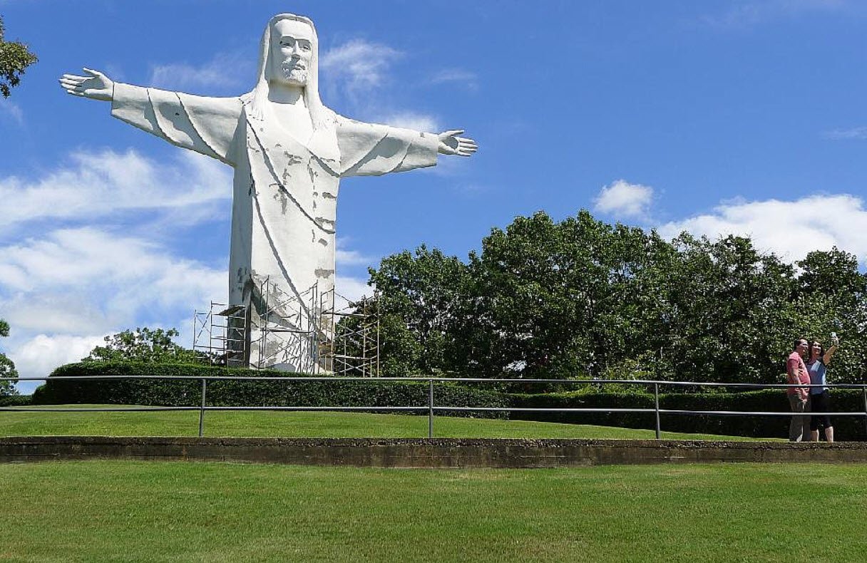 Completed in 1966 and constructed entirely by hand, the statue weighs nearly two million pounds and stands on a foundation reinforced with 320 tons of concrete and steel, engineered to withstand strong winds including tornadoes. The statue’s arms span 65 feet in a crucifixion pose, and the face alone measures about 15 feet in length.