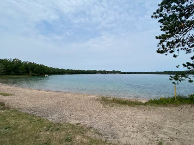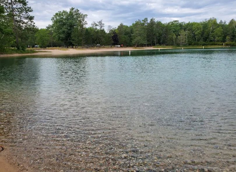 Clear Lake State Park covers 290 acres along two-thirds of the shoreline of its namesake 133-acre spring-fed lake in Montmorency County's Canada Creek Ranch, Michigan, within the vast Mackinaw State Forest.