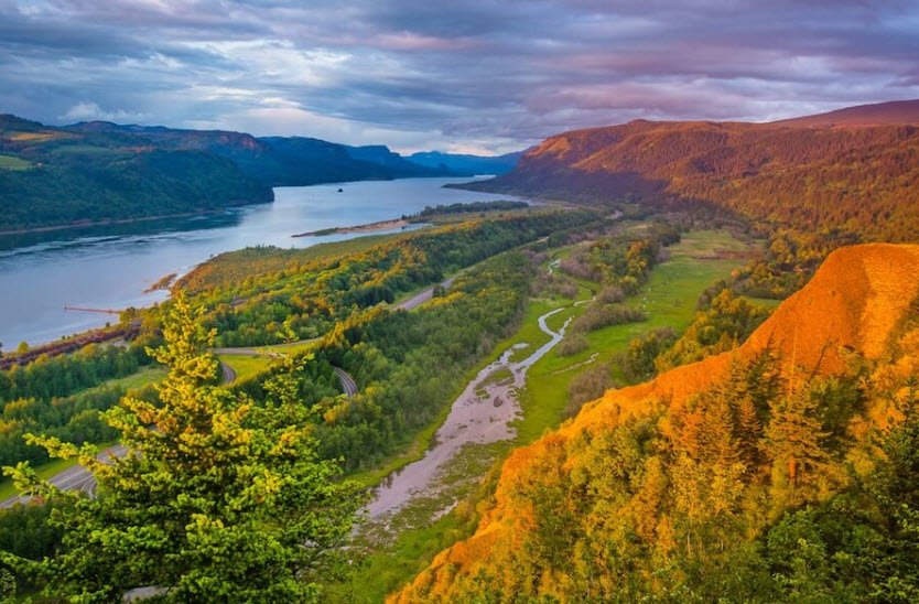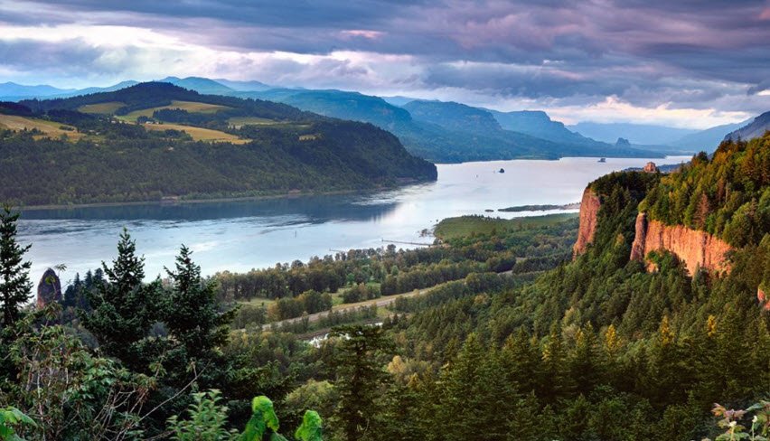 The Columbia River Gorge National Scenic Area is a breathtaking 85-mile long river canyon that stretches across parts of Oregon and Washington, carved by the Columbia River as it passes through the Cascade Mountains.