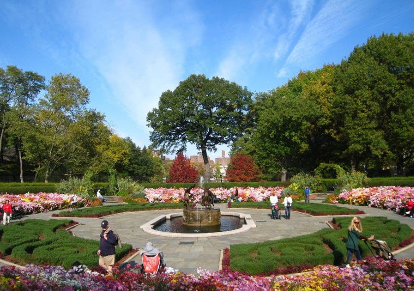 Visitors enter through the ornate Vanderbilt Gate, a wrought iron piece originally from the Vanderbilt Mansion. The garden is renowned for its elegant floral displays of tulips, lilacs, crabapples, and chrysanthemums, making it a popular destination for both locals and tourists seeking a peaceful and beautifully landscaped retreat in the city.