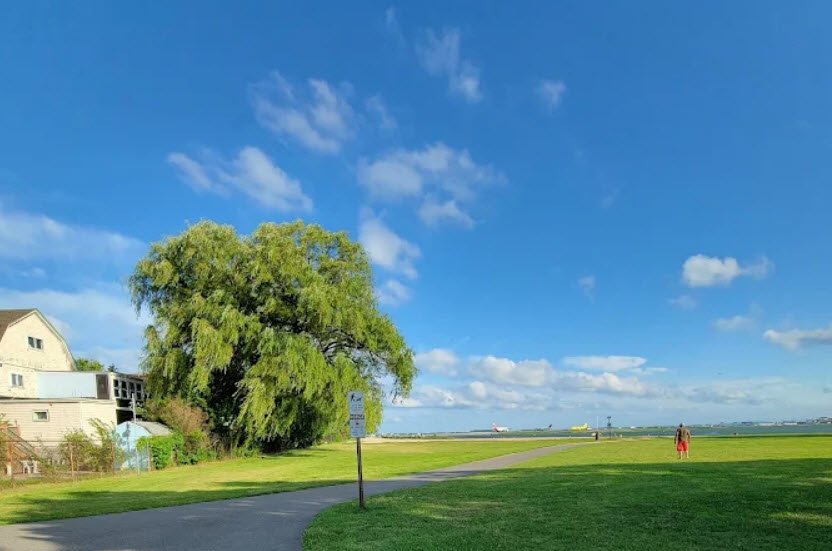 Locals call the eastern end "Shays Beach," and recent upgrades include a pedestrian overpass, bike path, and free parking, making it a family-friendly spot for plane spotting amid harbor views.