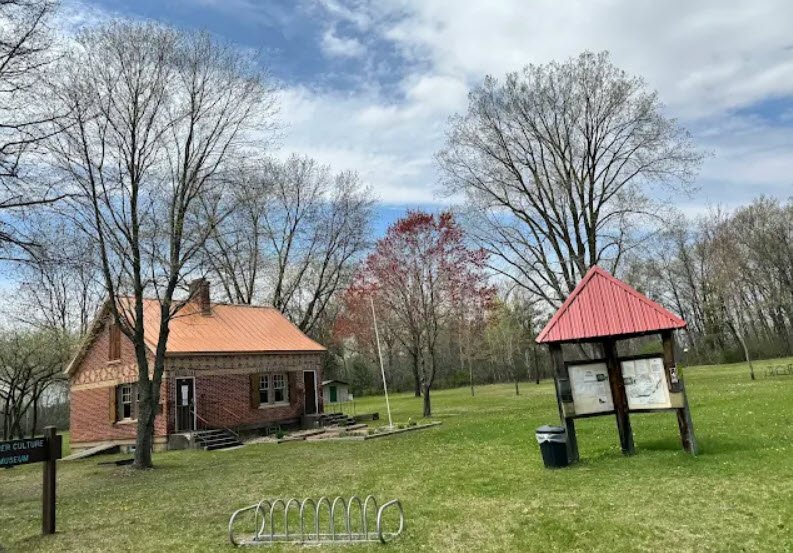 The park features walking trails through prairies, woodlands, and along the Oconto River, connecting to a 3-mile paved path for biking and accessibility, plus picnic areas, ample parking, and modern restrooms. A free museum in a historic 1924 brick building displays artifacts, exhibits on ancient burial practices, and the people's daily life, open daily from Memorial Day to Labor Day; no state park sticker is needed.