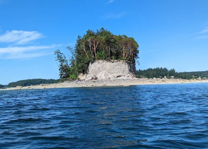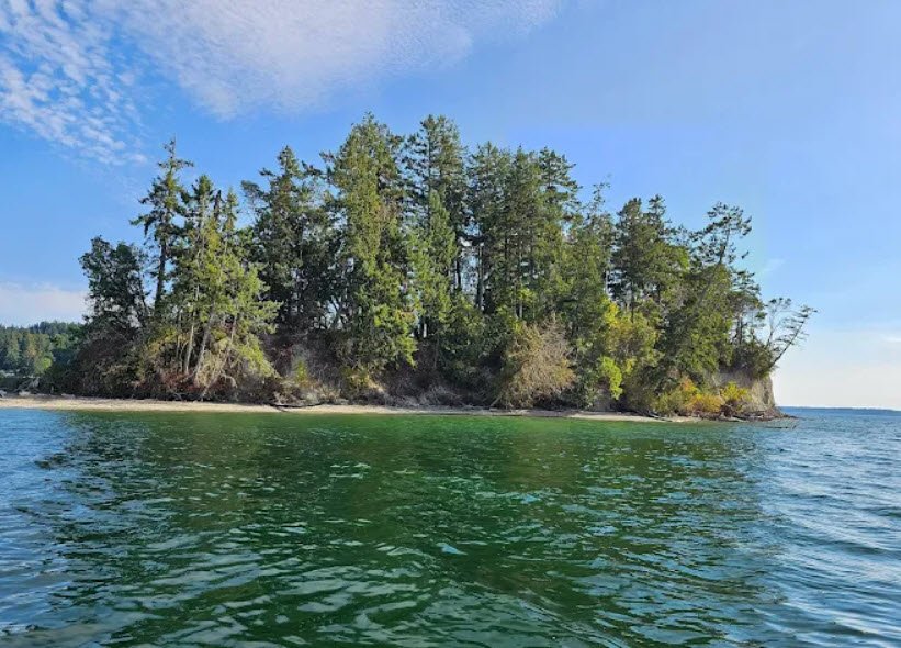 Historically known as Deadman’s Island for rumored Native American burials and Crow Island for abundant birds noted by explorer Peter Puget, it’s accessible only by boat, kayak, or rare extreme low tides via sandbar, with eight mooring buoys available.