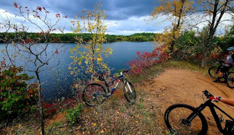 Cuyuna Country State Recreation Area in central Minnesota near Crosby and Ironton transforms former iron ore mining pits from the early 1900s into a 5,000-acre outdoor haven with crystal-clear mine lakes up to 525 feet deep, regenerated forests, and over 70 miles of world-class singletrack mountain bike trails for all skill levels.