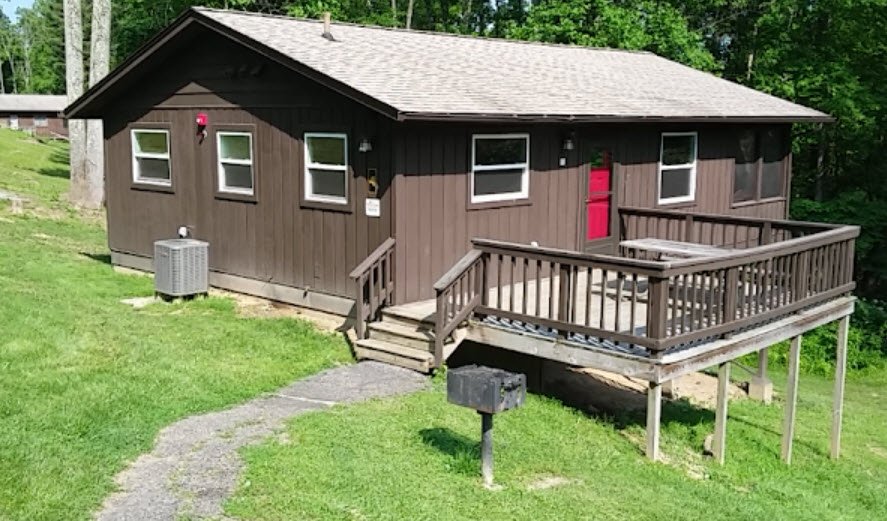 Recreation centers on the 1,560-acre lake with unlimited horsepower boating, a marina, multiple ramps, fishing, swimming beach, plus 195-site campground, 29 cabins, extensive hiking, biking, and equestrian trails, hunting areas, disc golf, picnicking, sports courts, sledding hill, and stargazing.