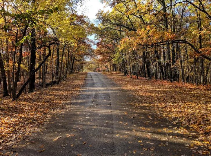 The park covers rugged, Ozark‑like hills, ravines, and ridges with mature forests, dolomite glades, and two small streams, functioning as a large natural buffer within an otherwise developed area. It offers more than 13 miles of trails for hiking, mountain biking, and horseback riding, including a two‑mile paved path, numerous picnic sites, a modern campground with electric hookups, group‑camp facilities, and a nature center that interprets the park’s plants and wildlife, all just minutes from the city yet feeling distinctly wild and quiet.