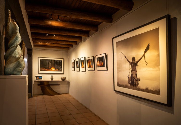 Open 11 a.m. to 5 p.m. daily except Tuesdays, the welcoming space features a skylight, fountain, and themed rooms drawing visitors for its unique mix of emerging and established regional talents amid Santa Fe's vibrant gallery scene.
