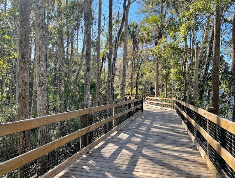 Ellie Schiller Homosassa Springs Wildlife State Park spans 200 acres along Florida's Gulf Coast near Homosassa, centered on a first-magnitude spring feeding the Homosassa River, where visitors arrive by tram or boat ride from the US 19 visitor center to explore native Florida wildlife exhibits.