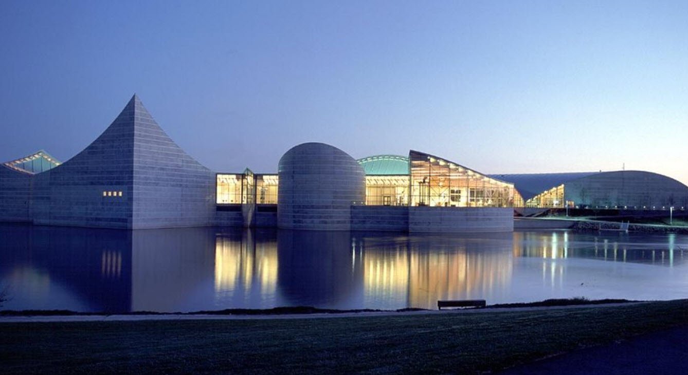Designed by architect Moshe Safdie, the museum's striking structure sits along the Arkansas River and includes two main buildings separated by a reflecting pond to create the illusion of being surrounded by water. The museum offers diverse exhibits including aviation simulators, Kansas geography and natural history, health science displays, and a three-story medieval castle for imaginative play.