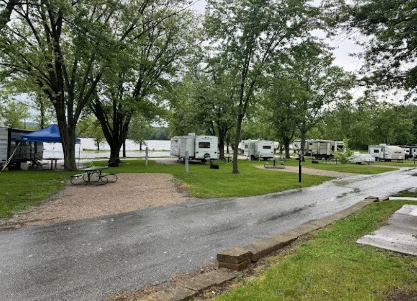 Fairport State Recreation Area is a compact 17-acre campground along the Mississippi River near Muscatine in Iowa, USA, offering 42 electric campsites with modern showers, restrooms, water hookups, and a dump station for convenient riverfront stays.