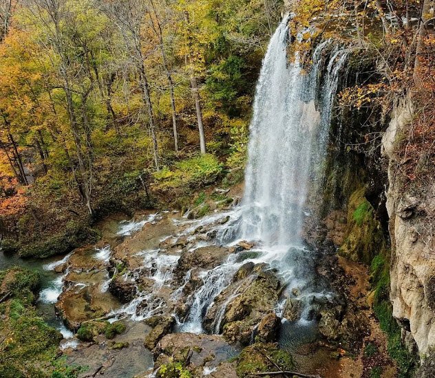 Accessible year-round via a roadside overlook on US-220 with a paved walkway and picnic area, it offers stunning views amid the Alleghany Highlands without trails or facilities like restrooms or cell service—no trespassing beyond the viewpoint is allowed. Praised by Thomas Jefferson as a "remarkable cascade," this scenic wayside draws visitors for quick stops to admire its natural beauty framed by lush forests.