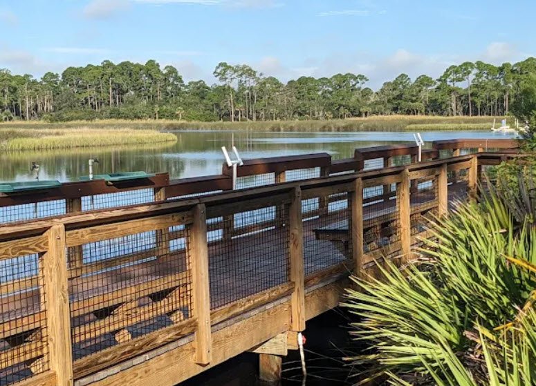 Established in 1950 through a land donation by Hiram Faver honoring his parents, this former 1817 Spanish plantation site features diverse habitats like maritime hammocks, flatwoods, sandhills, and tidal marshes, with activities including canoeing, kayaking, fishing, boating from a ramp, hiking short nature trails like the Hiram Faver Interpretive Trail, camping at full-facility or primitive youth sites, picnicking under pavilions, and wildlife viewing amid deer, turkeys, bobcats, and hawks.