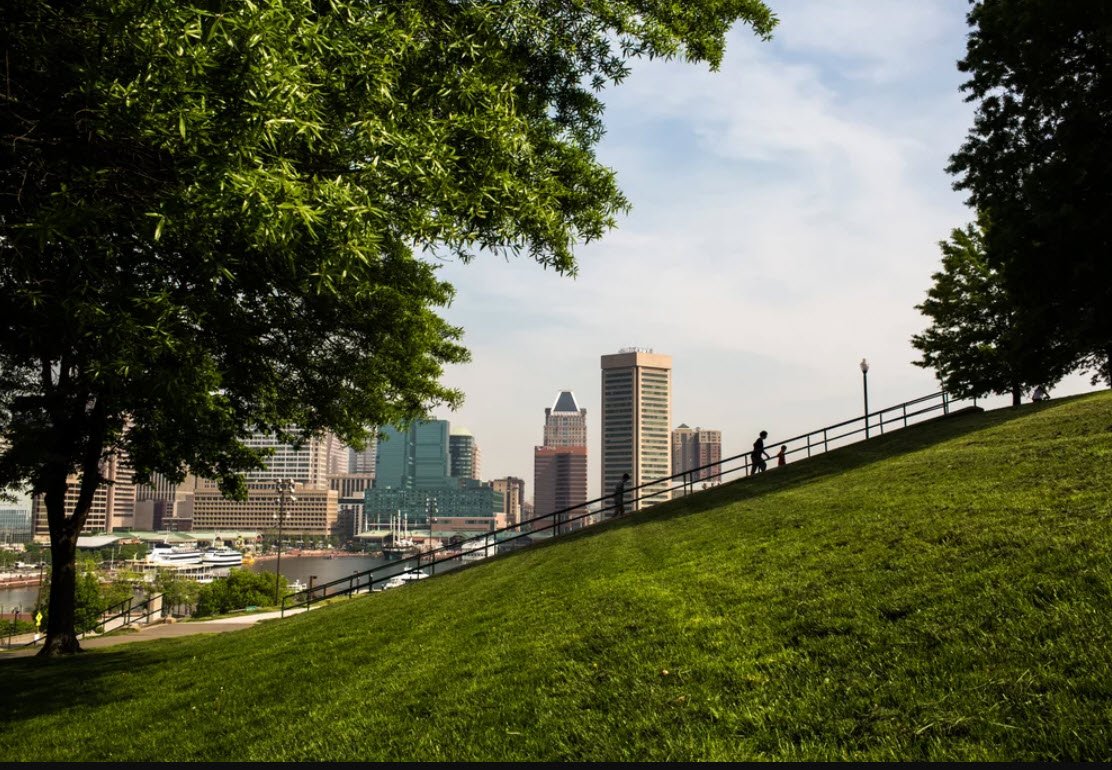 Its name commemorates the 1788 celebration of Maryland's ratification of the U.S. Constitution, when locals gathered on the hill for a patriotic event. The neighborhood features well-preserved streets with historic rowhouses dating back to the late 18th and 19th centuries, showcasing architectural styles like Greek Revival and Italianate.