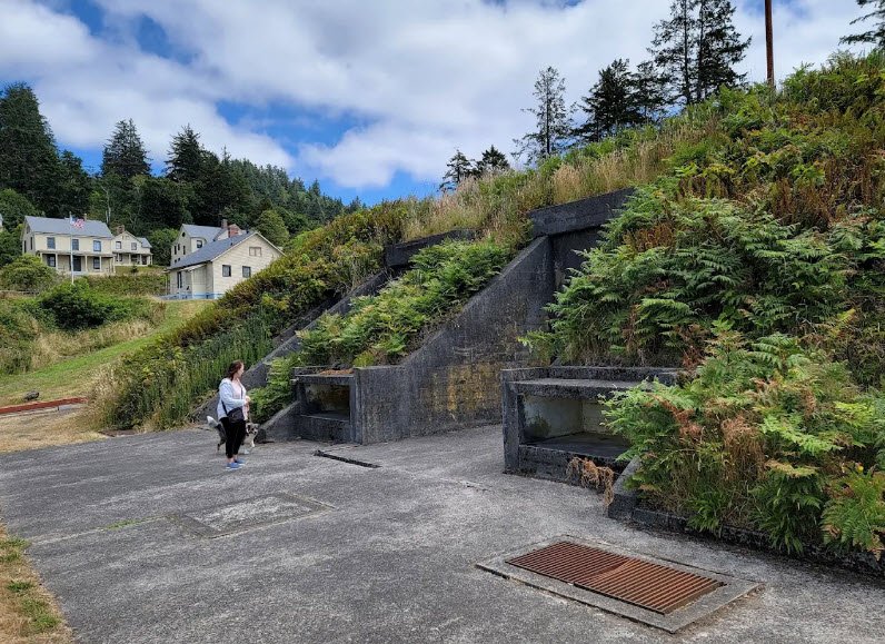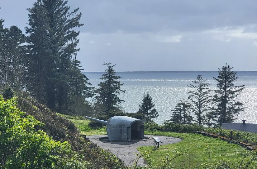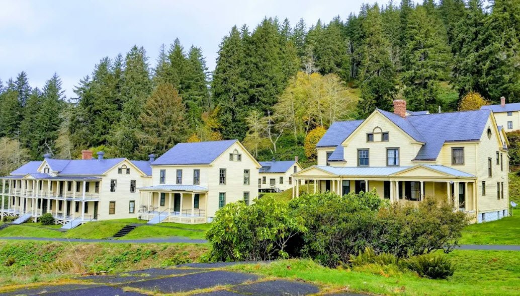 Decommissioned in 1947, it preserves twelve wood-frame military buildings like barracks and officers' quarters, three artillery batteries with massive guns, an interpretive center on early explorers and pioneer history, and five miles of hiking trails up Scarborough Hill for birdwatching, wildlife viewing, secluded beaches, and stunning Pacific vistas.