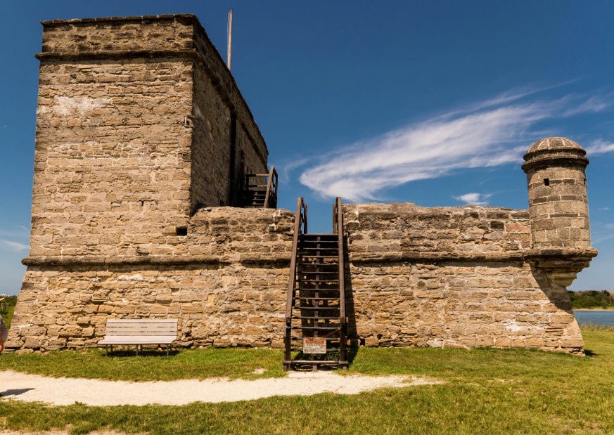 The fort was constructed after a 1740 British siege of St. Augustine exposed the vulnerability of the town’s southern entrance, which could be used by enemy ships to attack from behind the main defenses like Castillo de San Marcos. Made of coquina shell stone, the fort is square with walls about 50 feet long and a 30-foot-high tower, serving as a watchtower and defensive structure.