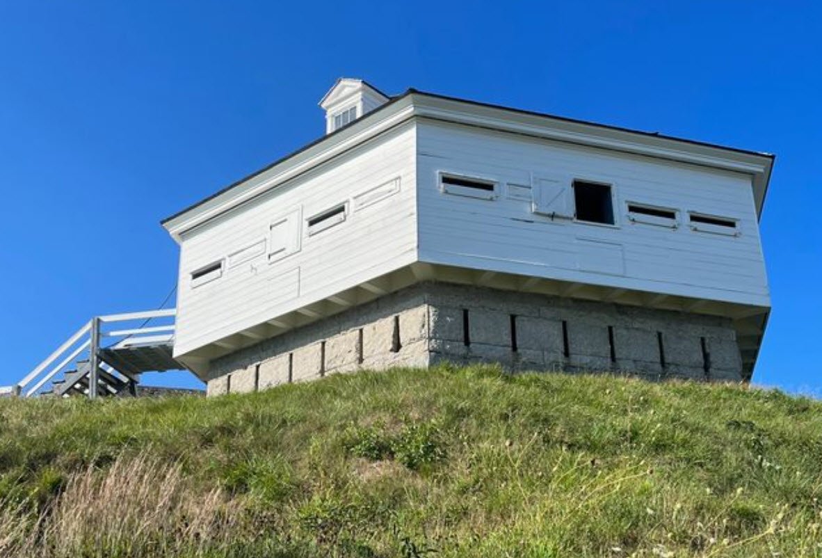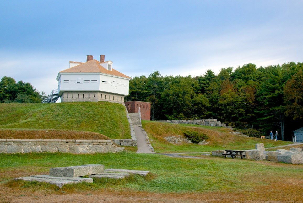 The site has been used for military defense since 1689, initially as part of colonial protection efforts and later as a U.S. fort established in 1808 under the second system of coastal defenses. The fort features a distinctive blockhouse built in 1844 with a foundation of mortared fieldstone, granite walls on the first floor, and squared logs above.