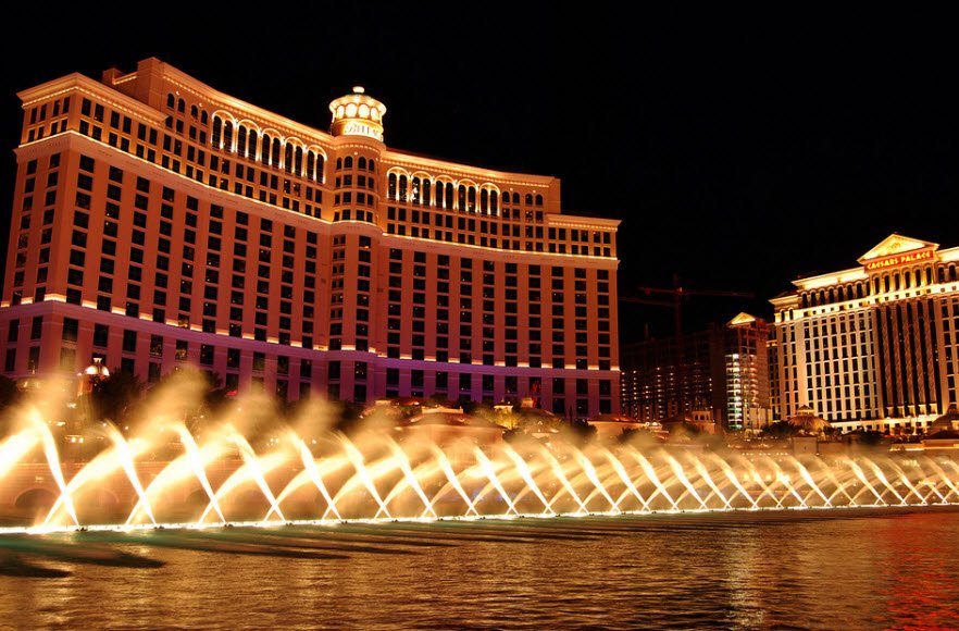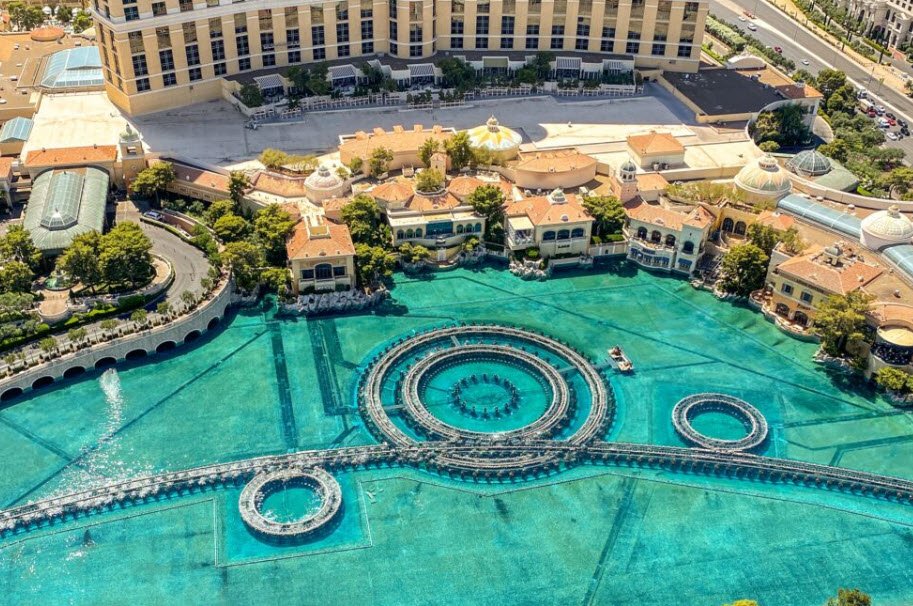 The Fountains of Bellagio in Las Vegas are a $40 million choreographed water feature located in an 8.5-acre man-made lake in front of the Bellagio Hotel.