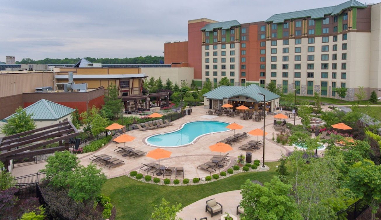 It features more than 130,000 square feet of gaming space with around 3,000 slot machines and about 40 to 66 gaming tables that include popular games like blackjack, craps, poker, and roulette. The resort offers 415 luxury hotel rooms and suites alongside amenities such as four on-site restaurants including a steakhouse and buffet, a seasonal outdoor pool, two hot tubs, a 24-hour gym, and a shopping area with designer stores.